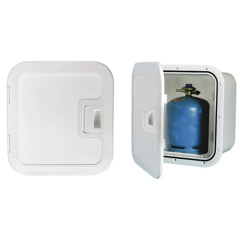 For 3-kg bottles, fitted with respective pressure regulator. Fitted with UV resistant Luran hatch and watertight gas hose joint. In compliance with the ISO 10239 standard. Ventilation integrated into the hatch. Right opening as in the picture. Possibility of left opening for a minimum order of 5 units.