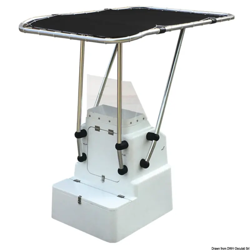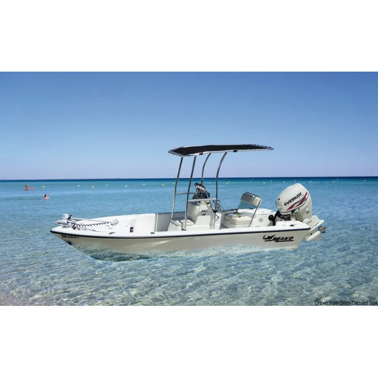 Manufactured from Ø 44 mm tube, with high-strength resin fittings and top-quality welded parts. Universal as the connections to the console can be adjusted as desired. The fabric of the T-Top is blue ATLAS polyester, 310 g/m, waterproof and UV resistant.Max. allowable speed when T-Top is on: 25 knots.