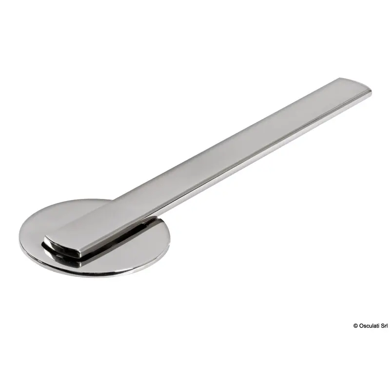 To be installed near the ladder to facilitate climbing on board.Made of AISI316 mirror-polished stainless steel. Lock in vertical position and flat when closed.Anti-vibration lock when open or closed.Fitted with studs and counterplate for installation.