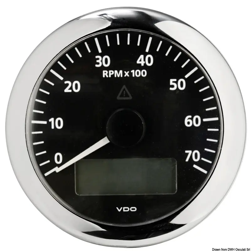 IP67 watertight case; double anti-fog pane; LED back-lit LED dial and needle; panel or flush mounting of the instruments; interface with NMEA signal; second frequency available as an option.All instruments are equipped with finishing ring having the same color as their dial. RPM counter and sumlog equipped with ring 27.499.01 or 27.599.01. 52-mm Ø instruments equipped with ring 27.499.03 or 27.599.03.AA - The revolution counters have to be equipped with: cable 27.599.11 (RPM counter function, only); additional cable 27.599.12 for other functions: hour counter, clock, voltmeter; push-button 27.599.13 necessary for basic and advanced programming of the RPM counter.EE - The synchronizers have to be fitted with cables 27.599.11 + 27.599.12.BB - Sumlogs must be completed with: Cable 27.599.11 (speedometer function only); Additional cable 27.599.12 for supplementary functions: partial/total mile counter, echo sounder, water temperature, clock, voltmeter + button 27.599.13.CC - The 52-mm Ø control instruments have to be equipped with: cable 27.599.11DD - The rudder angle metres have to be equipped with: sensors 27.176.00 / 27.176.10 + cable 27.599.11.