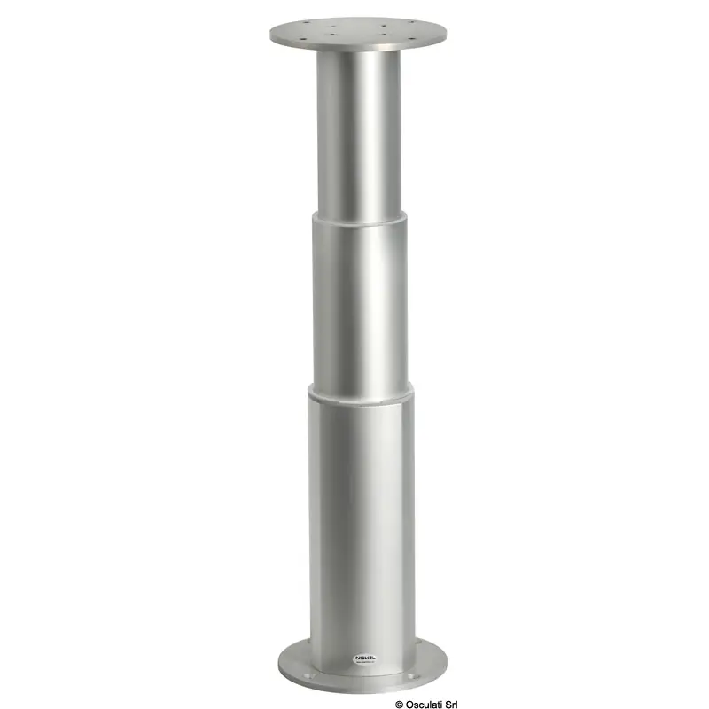 Manufactured in anodized aluminum with components for indoor and outdoor use. To operate the leg, the switch 48.749.01 is required.Ideal for mounting in pairs. If used singly, the table can rotate.It is possible to achieve custom heights with a minimum order of 10 pieces.