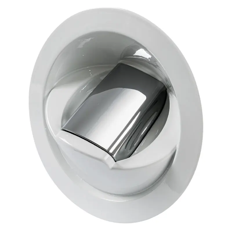 Flat hidden design. Horizontal or vertical mounting.Shower housing fitted with anti-vibration washer.The flow is adjusted by touching a push lock button that blocks the water jet and prevents waste.