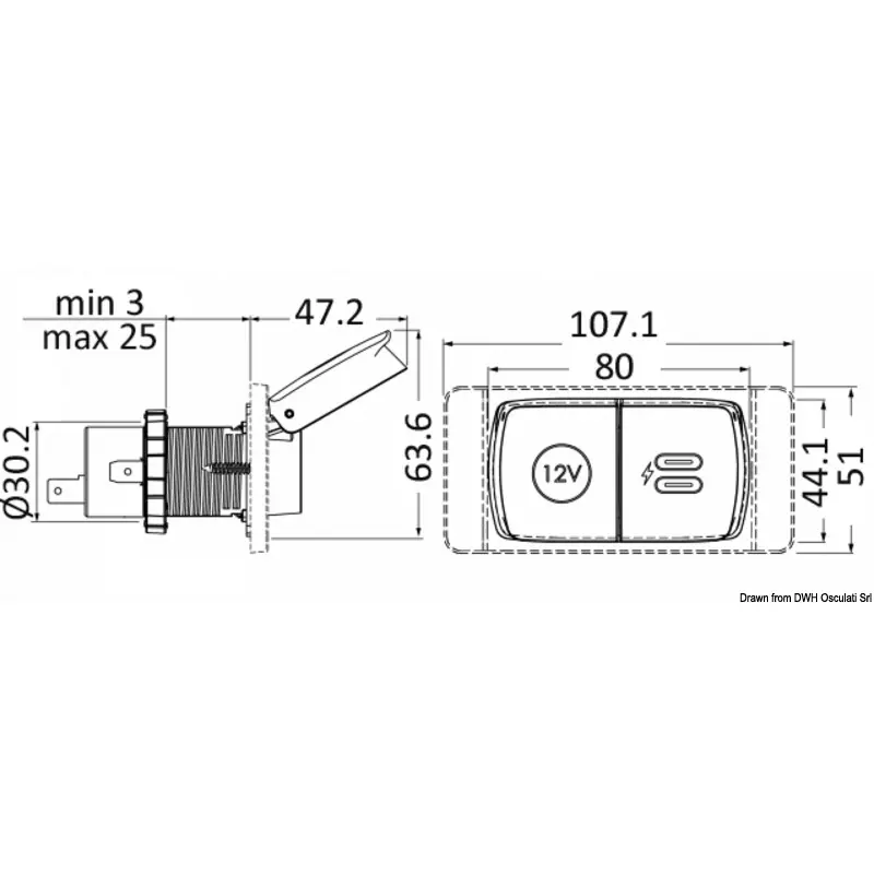 Osculati - SCANSTRUT Flip Pro Duo USB-A+USB-C and power socket 12V - 14.195.82