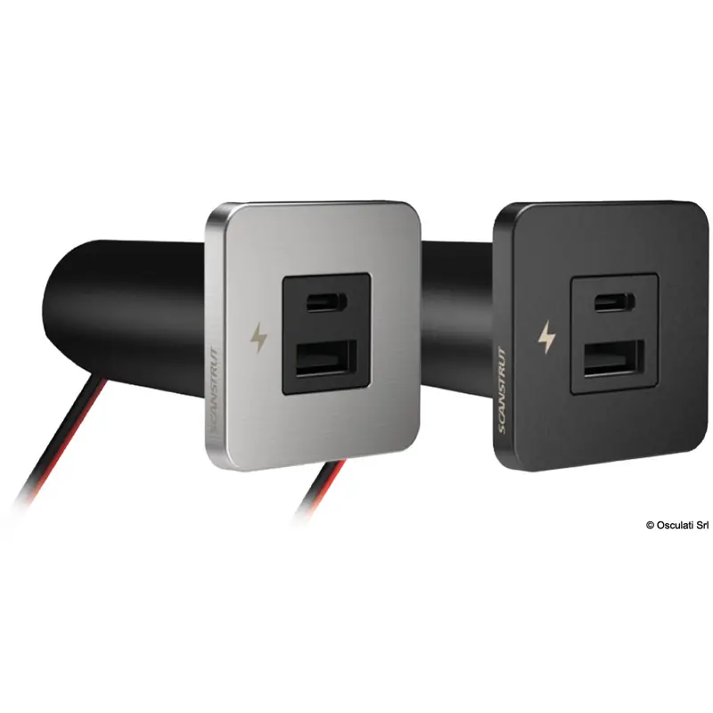 The dual USB port (A+C) Tile offers elegant and high-performance charging solutions, specifically designed for marine interiors. Stylish bezel options in matt black or high-quality brushed 316 stainless steel to perfectly fit luxury marine environments. Compact footprint 40-mm. a 29-mm hole saw is required for easy installation.Tiny combines functionality and style. It is the ideal choice to modernize the interior of your boat. Improve your boat equipment with this practical and sophisticated solution for daily charging of your devices.
