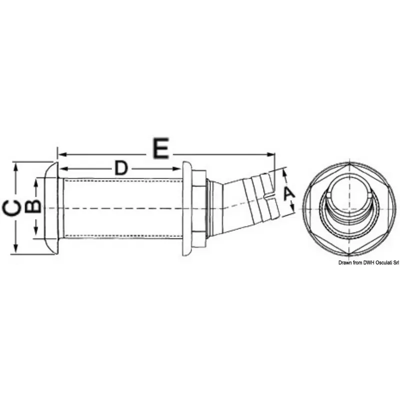 Osculati - Seacock polished SS head 15° 38 mm x 2"1/4 - 17.329.06