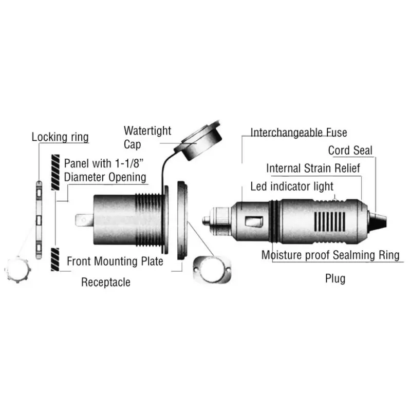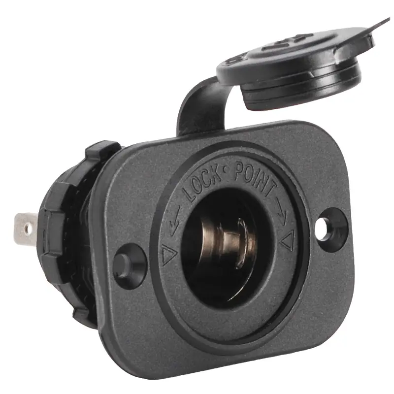 Secure and water resistant socket designed for lighters and phones.