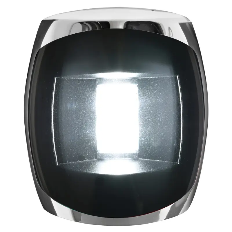 Mirror-polished stainless steel cover.Polycarbonate rear element and lens.Certificates COLREG72 and ABYC-C5, approved for vessels up to 20 m.