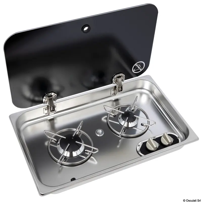 Osculati - 2-burner SS hob w/tinted glass cover 510x390 mm - 50.801.01