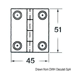 Made of stainless steel without screws, thickness of 1.7 mm, fitted with female bushing, threaded 4MA, welded under the hinge at the same position of the passing holes.