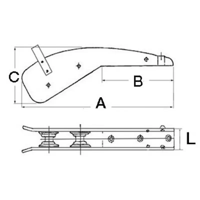 , fitted with a double sheave. It does not include an anchor locker kit.