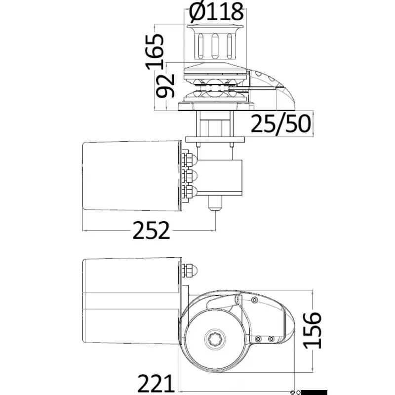 Vertical axis windlass entirely in AISI316 stainless steel. Available in high or low profile versions, with different motorisations recommended for boats up to 16m. Equipped with a rope tension system and integrated meter counter.