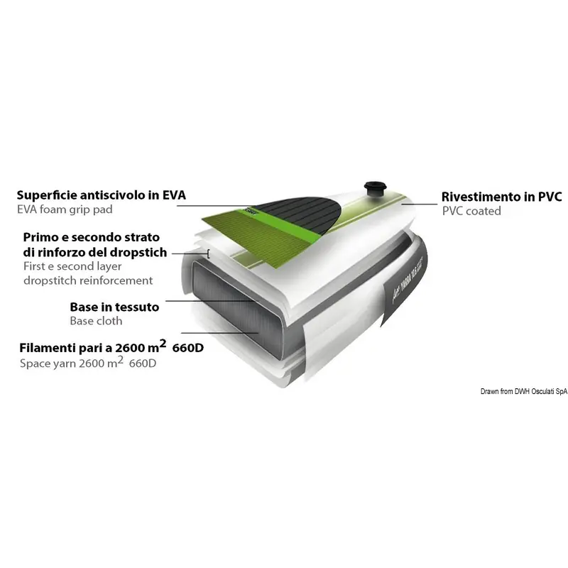 Anti-skid and anallergic EVA surface for increased stability, the Volta 10.0 is a lightweight yet sturdy and durable SUP board for sportspeople up to 90 kg.This board is very sturdy without compromising its handiness:- Drop stitching core consisting of thousands of threads reaching 20-Psi pressure so the board can be inflated to rock-hard rigidity.- Ultrasound thermowelds.- ultrasonic welding;- PVC with internal reinforcement sheet. SUP JOBE is ideal for everyone, from beginners to experts. The package includes:• adjustable paddle;• ankle safety hook;• manual inflator;• carrying bag for transport;• repair kit.