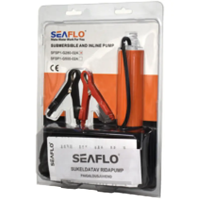 It pumps both water and diesel. Its cylindrical shape (41-mm Ø) can be easily fitted in jerrycans and tanks.It can turn continuously up to 20 minutes. It comes with 5-m cable and adjustable pliers.