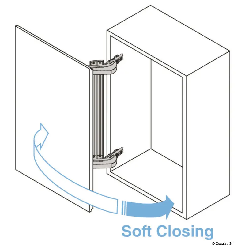 MonoFlat LIN-X450 hinge with lateral rotation mechanism.Allows lateral rotation of doors within reduced radius. Ideal for limited front space applications (electrical panels in corridors).The door does not impede clear space when fully open, providing full access to the cabinet.Free rotation and cushioned closure Soft Close. Simple installation, adjustable in 4 ways.