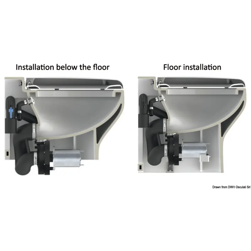 The Silence Plus is the ‘big bowl’ model. The length of 51 cm / 20.1 inches creates the at-home seating feeling.Control panel included. Complete solenoid valve system to bypass the onboard water system. For installation with a seawater loading pump, order code 16.525.12 / 16.525.24 or similar.