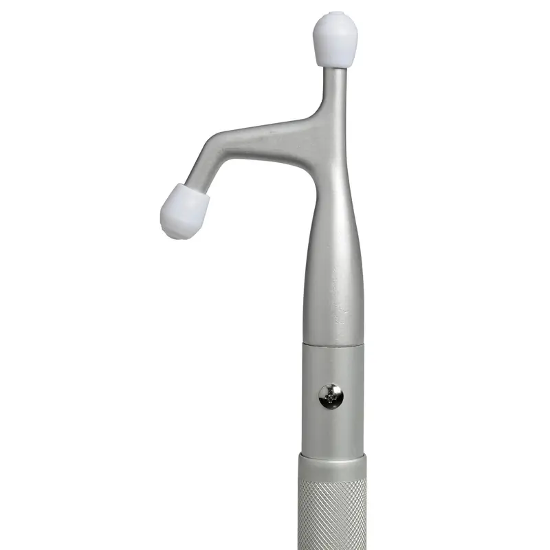 Made of anodized aluminium, natural finish (includes hook). Its rotation locking device enables fast locking at any point, very sturdy.
