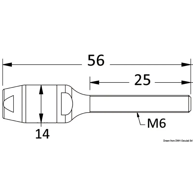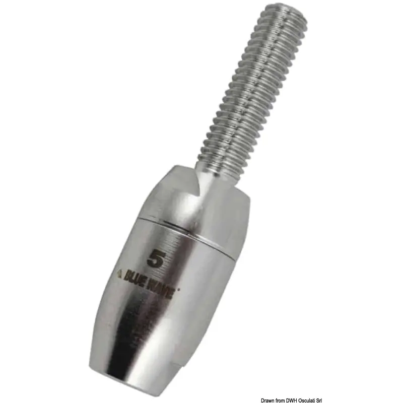 Durable threaded terminal for 4 mm textile ropes, crafted from polished AISI316 stainless steel.
