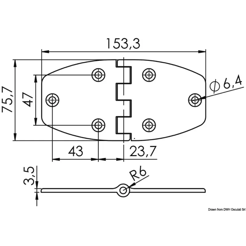 Osculati - Trapezoidal AISI316 hinge 153x75x3.6mm - 38.455.16