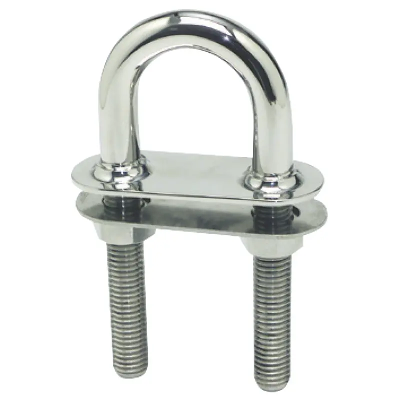 Durable mirror-polished stainless steel U-bolt fittings for marine applications.