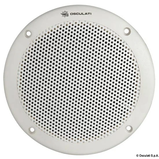 The Osculati Ultra Slim Speaker is an ultra-flat, waterproof stereo speaker designed for marine environments. Utilizing innovative CUTTING EDGE technology, it significantly reduces the depth of the cone while ensuring excellent acoustic performance. The speaker features a low-profile design with a recess depth of only 25 mm and is watertight to IP65 standards. It is sold individually and is suitable for installation with a minimum distance of 1 meter from the compass.
