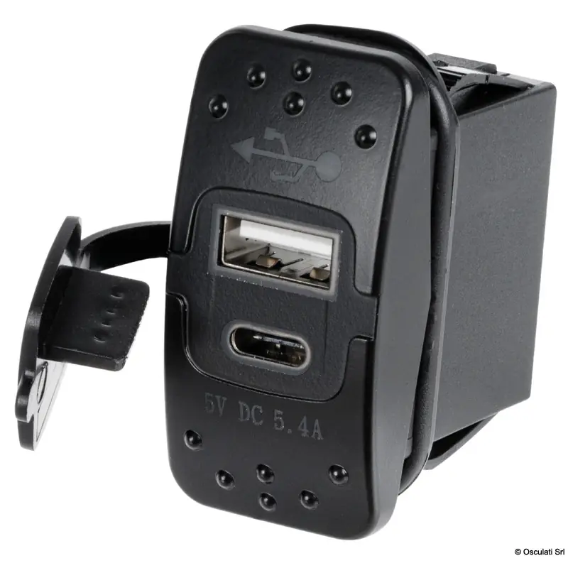 Versatile USB-A and USB-C plug for seamless connectivity in marine applications.