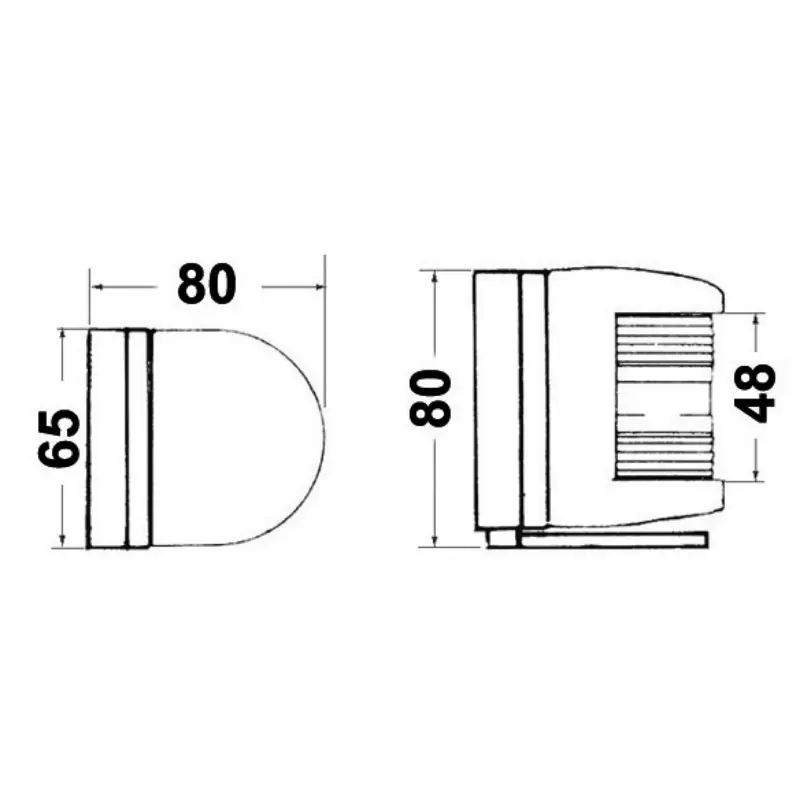For vessels up to 12-m long. RINA type-approval in compliance with the COLREG72 regulations. Fitted with black ABS rear base for deck installation or flat mounting.