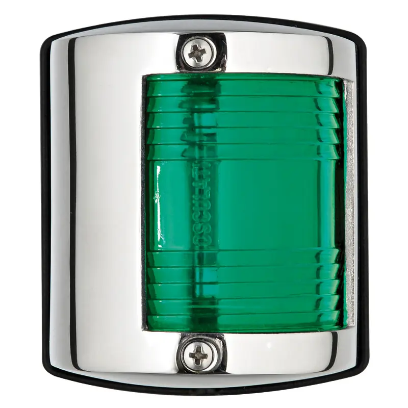 Durable green navigation light made of mirror-polished stainless steel, compliant with COLREG72 regulations.