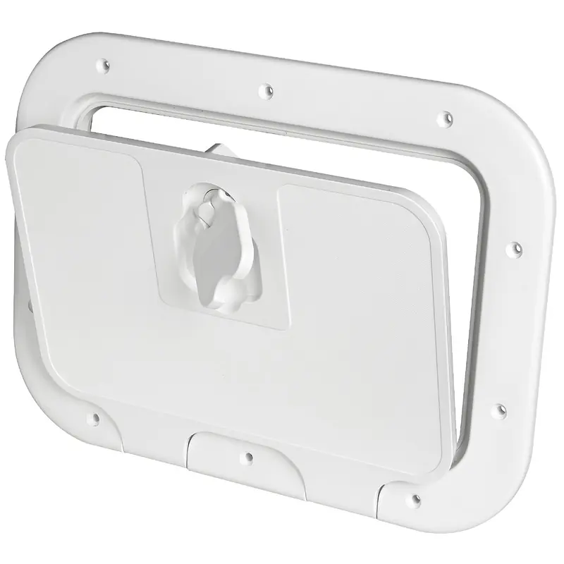 Splash-proof cover locking with neoprene gasket. Flush-mount. It may be used as hatch for lockers, fishing tanks, storeroom hatch and bulkhead hatch. 160° opening. It can be installed on any sports craft, boat design category A, B, C, and D, area II a, III, IV, watertightness degree 2.It can be installed on any sports craft, boat design category A, B, C, and D, area II a, III, IV, watertightness degree 2.