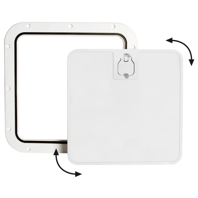 Very sturdy anti-skid surface; splash-proof lid closure with neoprene seal; flush mounting; they can be used as hatches for lockers, fishing containers or as boxroom hatches or bayonet front bulkheads; removable front for easy access. Ideal for installation on dashboard with nearby steering bench.