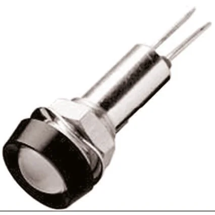 These LED indicators should not be operated without a suitable series resistor or other current-limiting device. LED Indicators 8mm Mounting, High Contrast Convex Lens, STR / LH / 8 Series. High contrast 8mm white diffused convex glass lens IP68 sealed Black anodised aluminium alloy bezel Housing designed to prevent rotation Shock and vibration resistant Supplied with sealing ring, fixing nut and crinkle washer Mounting Hole Size: 8 to 8.1mm Dia. Operating Temperature: -40 to +85°C