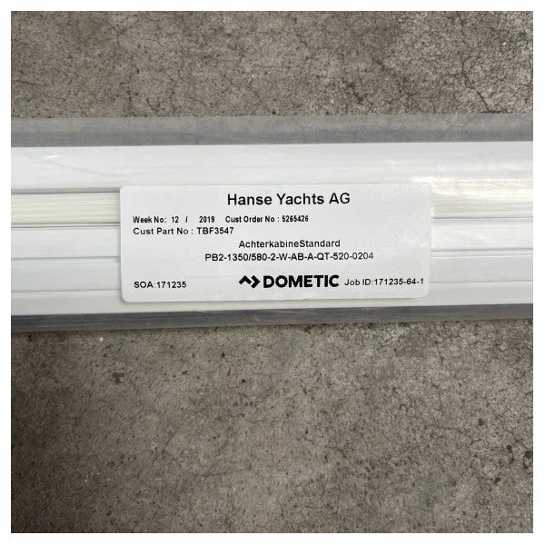 In the world of maritime interior decoration, the Hanse H548 Marine Cabin Roller Blind is an excellent choice. With a size of 1350 x 580 mm and the product number PBZ1350/5802WA, this roller blind is perfectly suitable for most standard cabin windows. It not only provides protection against bright sunlight and curious glances but also adds a touch of elegance to your interior. Features & Specifications:- Size: 1350 x 580 mm (WxH)- Product number: PBZ1350/5802WA- Suitable for standard cabin windows- Protects against bright sunlight and curious glances- Easy to install and operate- Made from high-quality materials for a long lifespan- Durable and resistant to moisture and saltwater- Easy to clean- Available in various colours- Perfect for both functional and decorative use. Why choose this product? The Hanse H548 Marine Cabin Roller Blind combines functionality with style and is therefore a must-have for any ship. It not only offers protection and privacy but also a sleek and modern appearance. Additionally, it is easy to install and operate, making it an ideal choice for both experienced and novice sailors. With its durable materials and resistance to moisture and saltwater, this roller blind is a smart investment for your maritime interior.