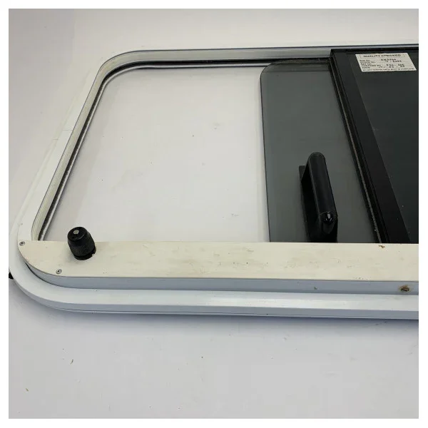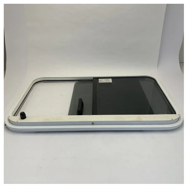 Sliding hatch for boats with aluminium frame and tinted glass. This high-quality window is designed for durable performance at sea and provides ample ventilation and light, while preventing water ingress. The robust aluminium frame offers strength and corrosion resistance, ideal for marine environments. The sliding mechanism is smooth and easy to operate with the ergonomic handle. Perfect for use in cabins and other enclosed spaces on boats where air circulation and views are desired without compromising safety and watertightness. The product has been quality checked and is suitable for various types of boats.