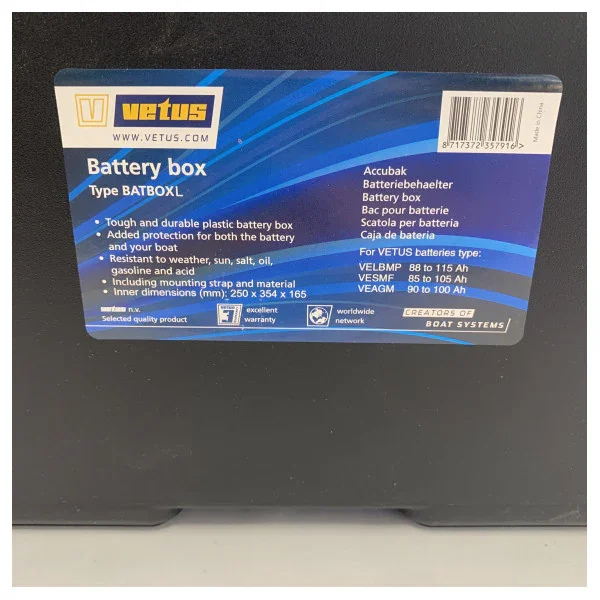 Optimize the safety and lifespan of your battery on board with the Vetus BATBOXL battery box. A smart and necessary addition