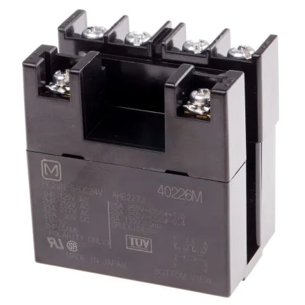 High-capacity PCB mount power relay with 24V DC coil and 30A switching current for reliable performance.