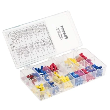 Reliable insulated terminal kit for efficient crimping in maintenance and construction wiring.