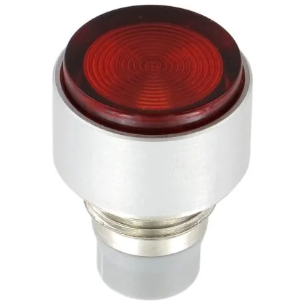 Durable red panel mount indicator lens suitable for T1 LED or filament lamps.