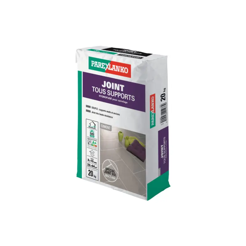 The PAREXLANKO all-support cement grout 20kg is the grout you need for your highly stressed surfaces such as facades, tiling on underfloor heating, terraces, wood, or old tiles. Its waterproofing is enhanced and its drying time is very quick.