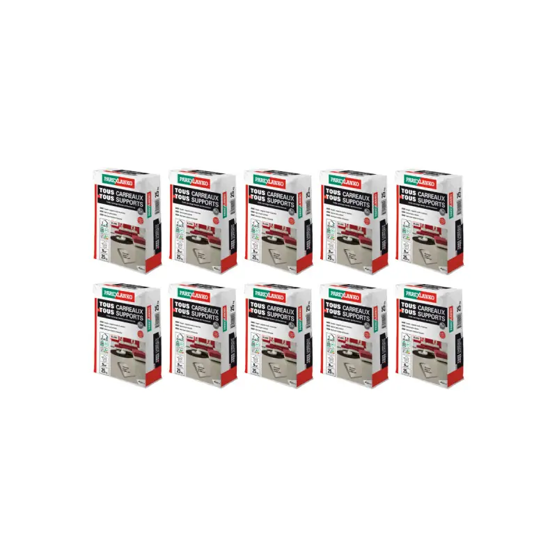 A pack of 10 PAREXLANKO Enhanced Tile Adhesives All Tiles All Supports - White - 250 kg