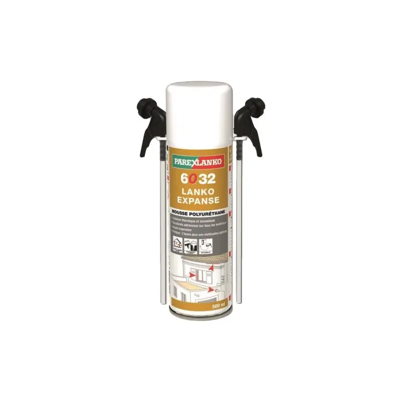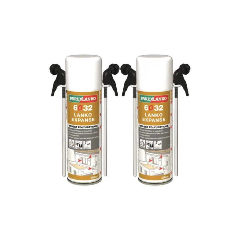 This PAREXLANKO lot consists of 2 6032 Lanko expanse aerosols to be used for your sealing work. Indeed, these one-component polyurethane expanding foams in aerosol form harden after extrusion. Easy to use thanks to the adapter that allows for better targeting of the area to be treated. These multi-purpose products are ideal for achieving sound and acoustic insulation. You will also be able to fill and seal cavities and hollow bodies. Multi-support products, they adhere perfectly to wood, concrete, tiles, mortar...