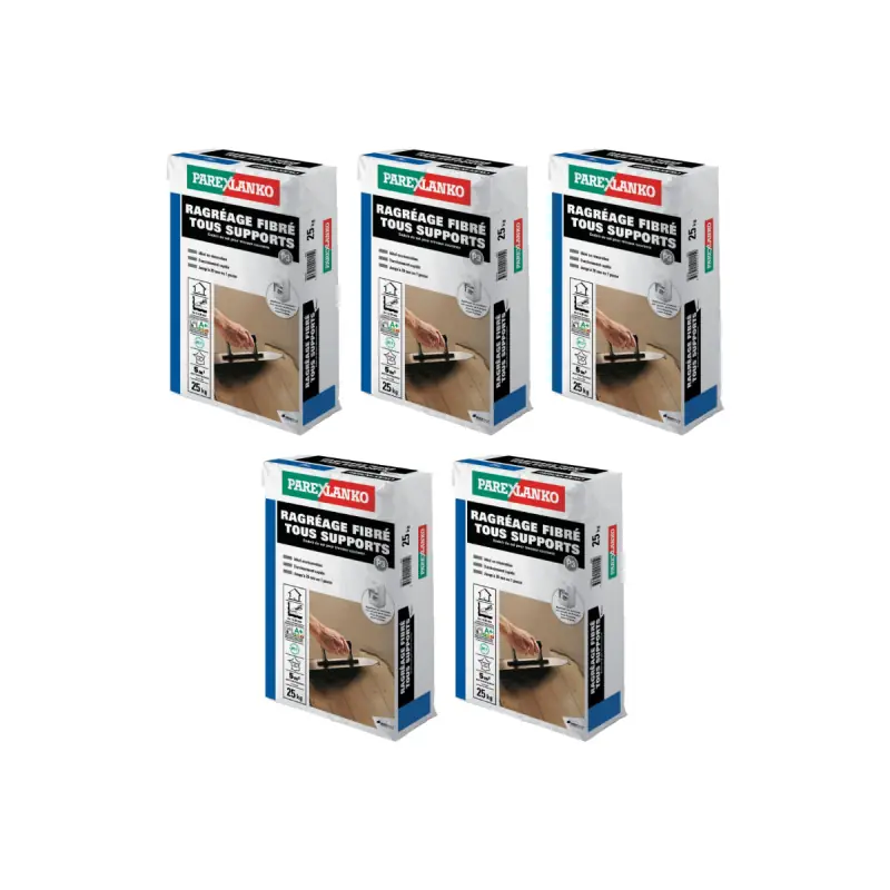 ThePAREXLANKO all supports fibre-reinforced levelling compound - 25kgis a ready-to-mix coating for your interior floor. It is used before laying coverings (tiles, parquet, paint, plastic slabs, etc.). These fibres allow it to be suitable and applicable to deformable supports and all types of underfloor heating. Please note that the levelling compound can only be applied when combined with a universal primer: cement support, ground slab, anhydrite screed, CTBH-CTBX wood panel, etc.