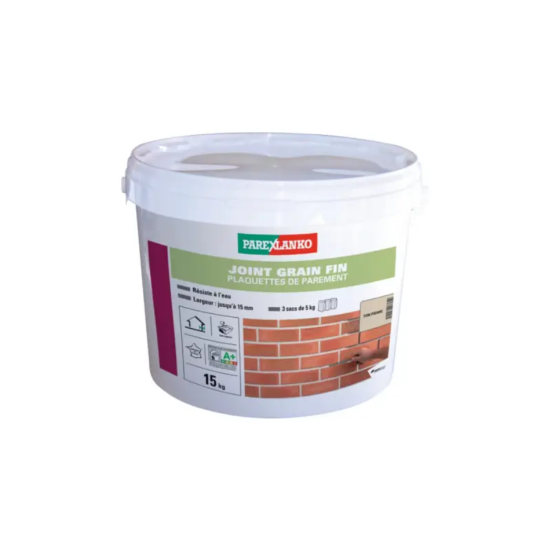 Fine grain joint for PAREXLANKO cladding tiles of 15 kg is an ideal powder joint for work on exterior and interior walls. Indeed, with this product, you can create joints up to 15 mm wide on brick and natural stone cladding tiles. Moreover, it will enhance the seal of the joint by making it waterproof.