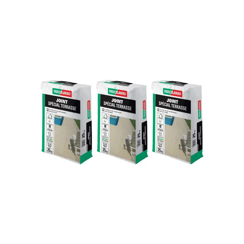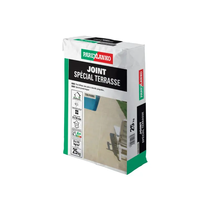 Summer is approaching and you want to install or renovate a terrace? This 25 Kg powder joint bag is an essential element for this type of outdoor work. Indeed, with this product, you can create joints from 6 to 50 mm on the ground or your exterior walls (cladding tiles). Moreover, your installed joints will have great waterproofing. Finally, if you wish, you can achieve finishes depending on the tool used (washed, brushed, or smoothed).
