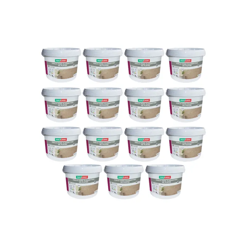 The PAREXLANKO 15 kg plaster tile adhesive is a paste adhesive ideal for work on interior walls. Its very high adhesion allows it to bond plaster tiles and stone cladding. Your adhesive applications will accommodate models up to 60 x 20 cm.