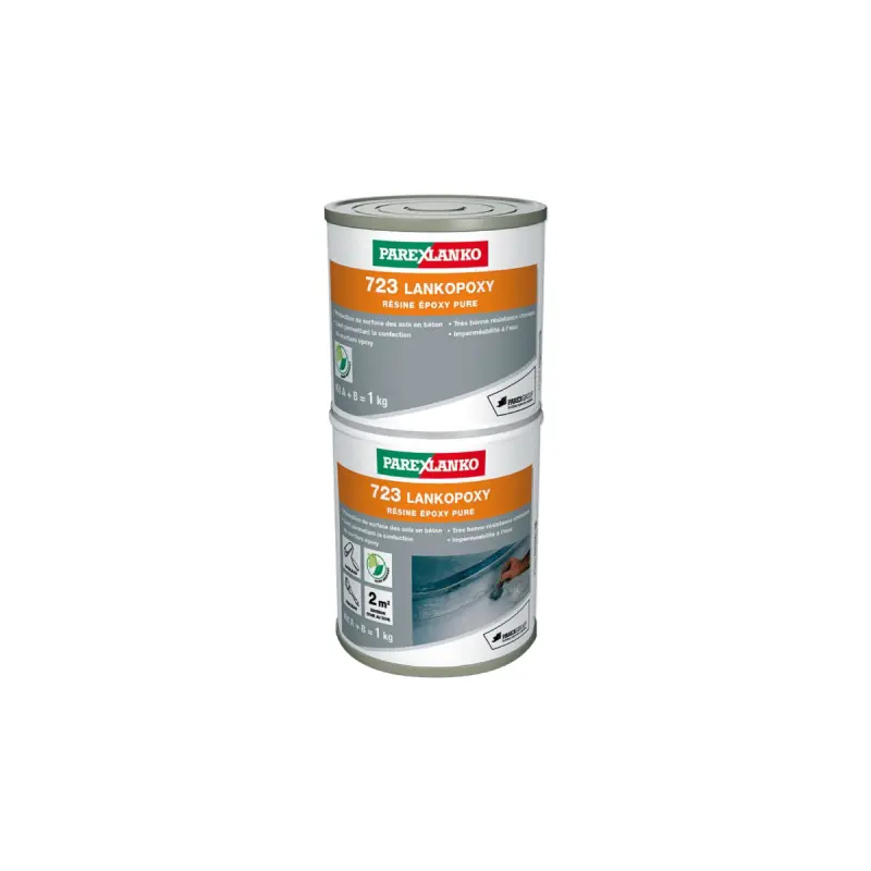 Protective epoxy resin for floors or for draining concrete 723 LANKOPOXY PAREXLANKO - 1 kg ready to use, this multi-purpose and multi-surface product is ideal for carrying out numerous tasks. Indeed, on one hand, with this polymerised product, you can reinforce your surfaces such as cement screeds. Thus, you can protect, for example, your tree roots via a draining concrete. On the other hand, you can also make it waterproof to protect them from water.