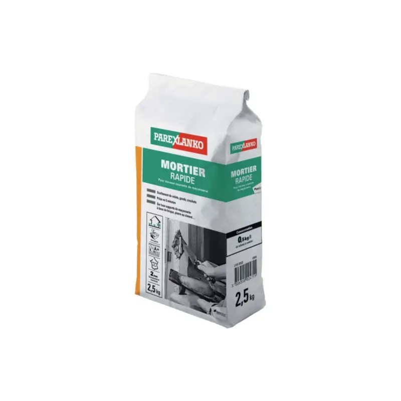 The PAREXLANKO quick-setting mortar - 2.5kg is a quick-setting product: less than 5 minutes. It will be ideal for saving time on your small repairs and fixings. Particularly in the case of fixing repairs to concrete, hinge fixings, post fixings, fence fixings, stake fixings, ramp fixings, or even window supports.