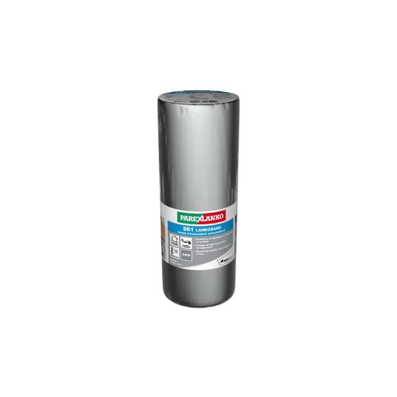 The self-adhesive sealing tape for roofing 261 Lankoband PAREXLANKO - Grey - 20 cm x 10 m is a self-adhesive elastomeric bitumen. Ideal for protecting and repairing various surfaces, particularly concrete seals and wooden mortars. You can use it for roof sealing, gutter sealing, and flashing sealing.