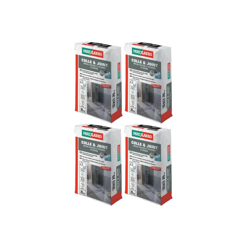 The 25 kg joint adhesive is an ideal glue for joint application (from 1 to 8 mm in joint) and for the installation of tiles on new or renovated surfaces, particularly for Italian showers or swimming pools. Its bonding and grouting adapt to glass paste or pebble slabs.