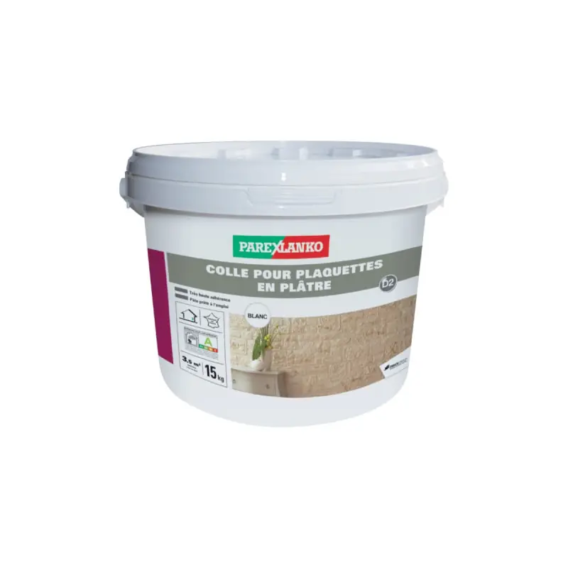 The PAREXLANKO 15 kg plaster tile adhesive is a paste adhesive ideal for work on interior walls. Its very high adhesion allows it to bond plaster tiles and stone cladding. Your adhesive applications will accommodate models up to 60 x 20 cm.