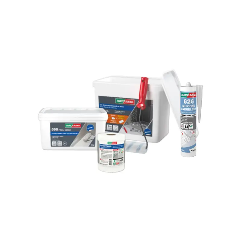 The PAREXLANKO pack includes a white silicone tile adhesive that is a single-component water-based product. It is ideal for multiple tasks: sanitary tiling and plumbing. The sealant is ready to be applied to peripheral joints and for sealing cracks. Warning: do not use on floor joints subjected to heavy abrasion, aquariums, or surfaces in contact with food. It is sold with a bathroom sealing kit, a set of products containing: