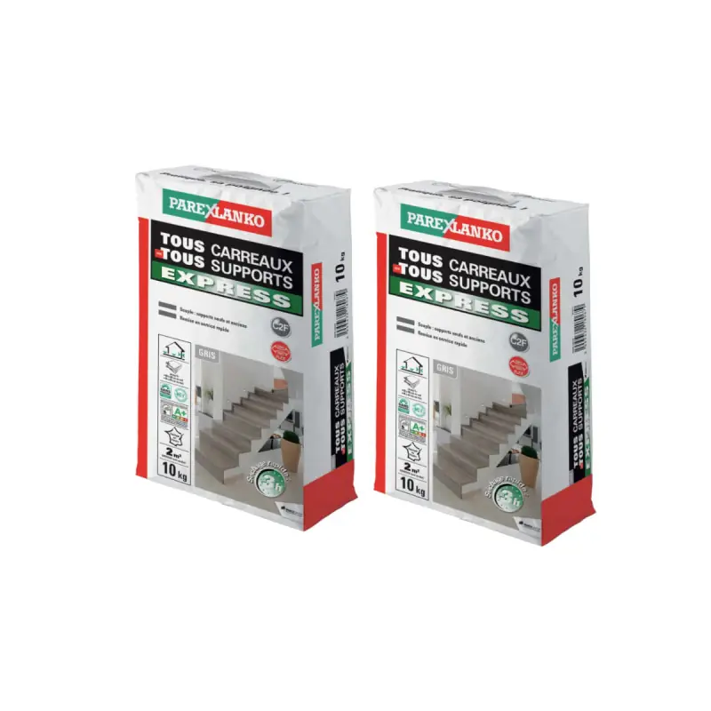 Pack of 2 PAREXLANKO Tile Adhesives for all tiles and all surfaces express - 10 kg is a mortar adhesive recognised for its strong adhesion. It is an ideal product for laying tiles of small or large formats on new or old surfaces. On old surfaces, you will not need a primer. This adhesive will be suitable for a quick re-commissioning of your rooms.